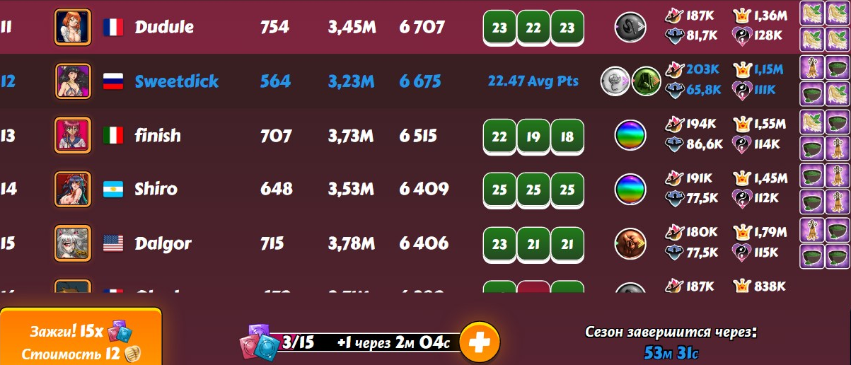 Last week, as in the weeks before, I secured a place in the top 15 of the 3D League. Which suits me perfectly at this stage of my hero's development. And I'm not resisting it. I hope this will last for a while before I can give in to my ambitions and try to achieve something even higher. -