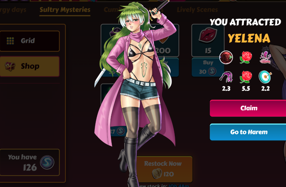 Um, so what's the point of playing this then? There's nothing compelling here other than the story. The interface is lousy, the combat mechanics are awful, the economy is terrible, the girl pics are simplistic, and you can find tons of better, more interesting ones without having to invest tons of resources into upgrading them.