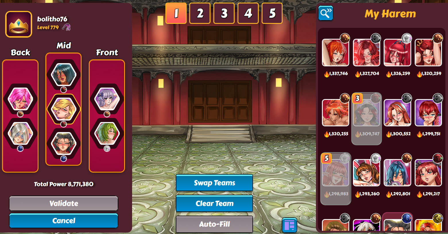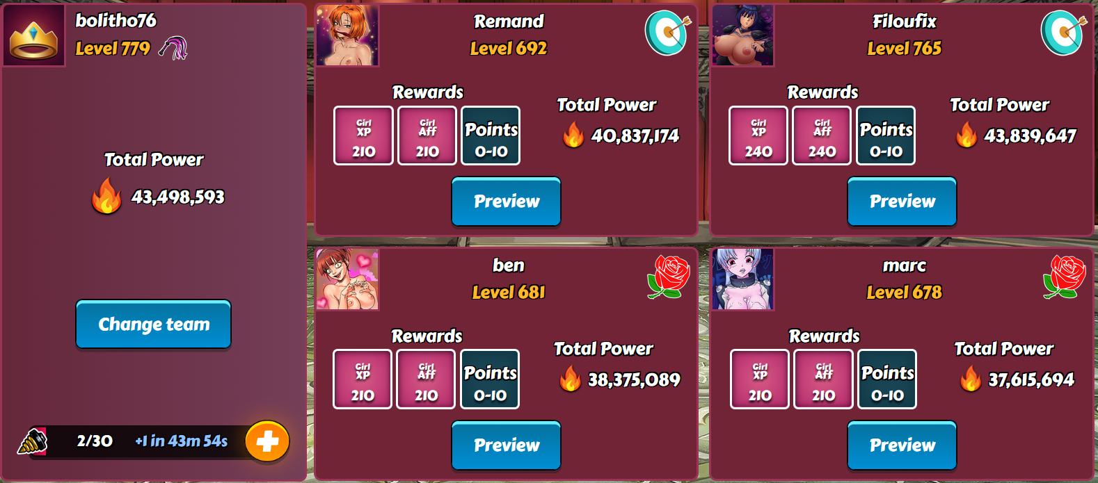 Choose an opponent who seems beatable. The game will show you the fights of your 5 Teams against the opponent five Teams or you use the skip button (recommended after the fights last looooong) to go directly to the reward screen.