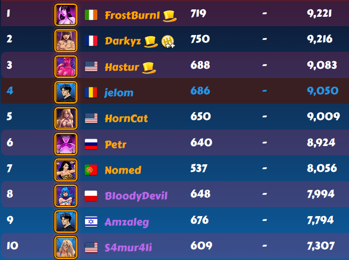 New year and old positions. It seems top15 group is my usual position. Well, a relaxed league and game is what I need. Tom208 won the tie for first place. -
