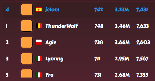 After some weeks away, I will resume my updates on the league results, first the older weeks For the 7 of august, I reached a third place For the 14 of august I had no screenshot, but I was in top 4 if my memory serves me well For the 21 of august I was fourth And finally for today 28 of august I ended in a third place