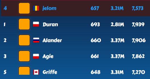 Relaxed top15 with a 7th place. Mickoloko annoyed me a bit because he was always with at least 3 boosters changing them one at a time every few hours, but he was fighting to win so congrats. -