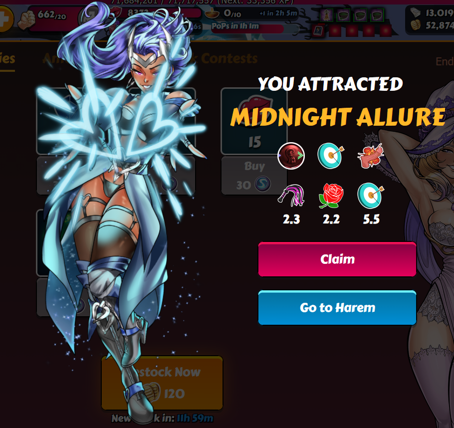Let's start this time with the main character, she is one of the a little bit more expensive girls. Mythic #62 / 890 CP / 5,62% Closely followed by her companion at CxH, who needed even a handfull fights (and one drop) more. Mythic #43 / 896 CP / 5,69% The Lady from PsH shows her gals that despite her sporty appearance it is not necessary to make it too hard. Mythic #37 / 669 CP / 7,47% How the remaining Gurl from TPSH decides to behave has yet to be determined. So far she plays nice, at about 7,5% And she really knows her game After teasing me a few times with only 4 shards in the x50, now she is for real. And she is eager to join, the less expensive of these four. Mythic #27 / 621 CP / 8,21% -