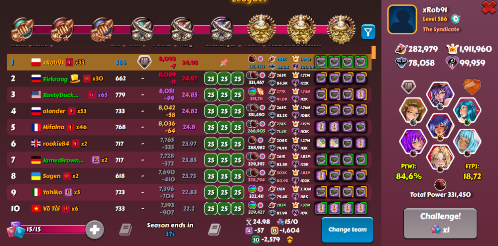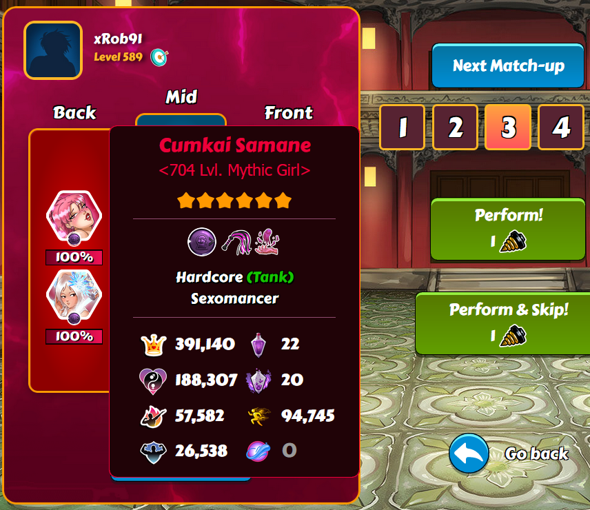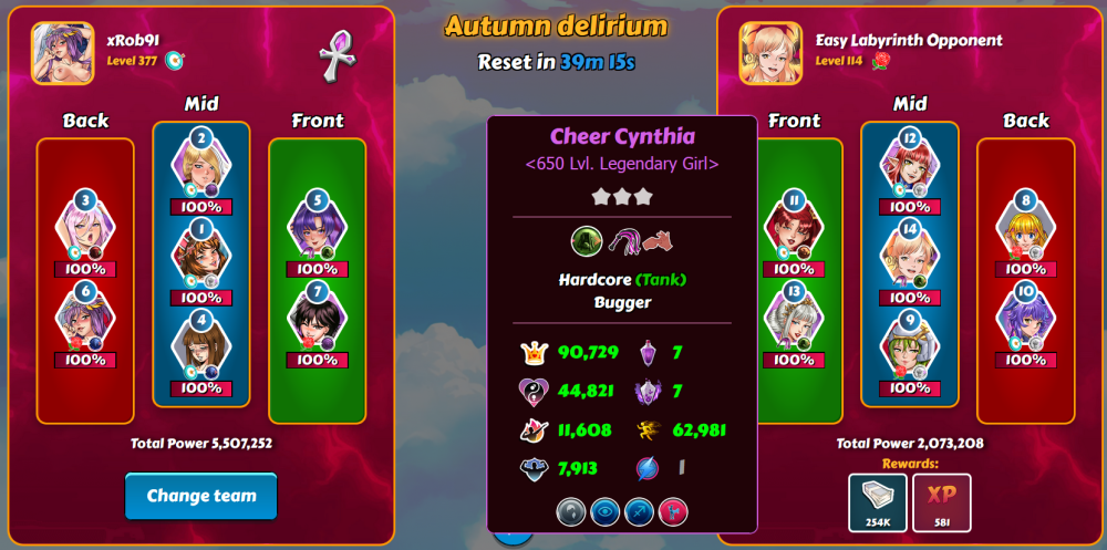 It seems that KK copied laby mechanics when creating Penta Drill... together with some roles and skills being nerfed on opponent. When you fight someone with sexomancers, their girls will be revived with only 1/20 of ego. Similar things with fluffer role and submissive skill. It means that good laby team can be strong atk team and weak def team to help others. 🤔 I suggest not telling KK staff about this or they may change it. 🤫 I mention it here because I know they don't visit the forum anyway.