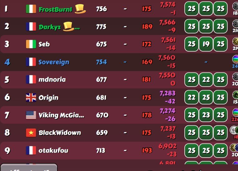 Tout ca pour dire que tu as eu peur de m'affronter moi et Joe dans une ligue commune !!! ;-) Tu as atteint des sommets MM. A ce jour, pour moi, tu restes le meilleur joueur avec Scarlett. Dommage, je t'ai croisé et battu a une époque ou tu n'avais pas ton plein potentiel. Mais je comprends ta décision et je la partage. Bon vent a toi Google trad : All that to say that you were afraid to face me and Joe in a common league!!! ;-) You have reached heights MM. To this day, for me, you remain the best player with Scarlett. Too bad, I crossed you and beat you at a time when you didn't have your full potential. But I understand your decision and I share it. Good luck to you -