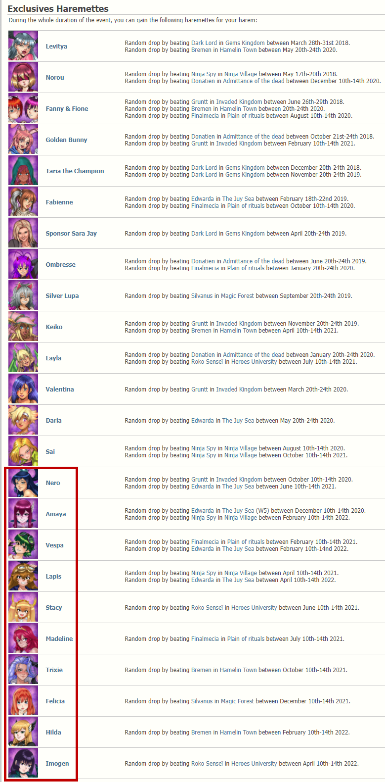 Wow! Thanks man. Now I know I can still get Norou and Taria. I don't even like Taria, but want her for completion sake. I'll add those posts to my collected L5 MP drop dates. The girls in white are the ones I'm missing (besides the mythics). I assumed that all of the LD girls after Sai weren't in the MP, but that might've changed? Making the chart made me realize that Sai was added to the MP pool just 3.75 months after her LD debut. Hopefully, we see some of these newer L5s in the MP soon.