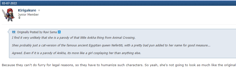 I complained on the wiki once, that Neferkitty didn't look like Ankha, that it was more like a cosplay of Ankha. A member named @Kirigakure? said that they can't do "furry" for legal reasons. That would explain your issue w/ Demi. https://harem-battle.club/wiki/Harem-Heroes/HH:Neferkitty?do=comments