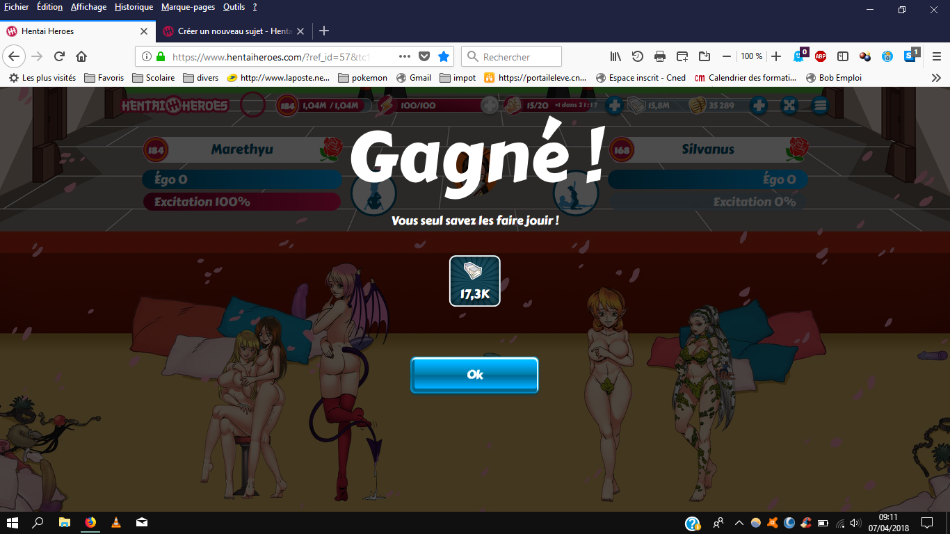 Bonjour, Je viens de constater une deuxième fois un bug sur Hentai Heroes, je n'ai pas voulu alerter avant mais j'ai attendu de le refaire quelques jours plus tard pour être sûr cette fois-ci de ne pas avoir fait une mauvaise manipulation. Je joue sur l'application Android et sur PC(mozilla firefox pour mon navigateur, je ne sais pas si cela le fait sur un autre navigateur) à la fois. Lorsque je suis sur PC et que j'ai l'énergie de combat pleine, je tente souvent des combats mais parfois cela prend bien plus de temps que sur la version mobile, du coup je lance l'application et j'utilise toute mon énergie. Sur la version PC cela n'est jamais rafraichit même quand je clique sur plusieurs boutons du jeu ou que je rafraichis, je suis obligé de me déconnecter et reconnecter si je veux que cela soit pris en compte. Si, avant de me déconnecter, je relance l'énergie sur le PC, j'ai un prix de 5koban(de mémoire) pour un seul combat à relancer alors que j'ai bien fait mes 20combats sur la version mobile... Autrement dit, je peux refaire vraiment 20 combats contre les trolls/vilains. Je ne sais pas si cela a été déjà signalé, j'ai cherché sur les 3 pages précédentes mais je n'ai rien vu. Donc je tenais à le signaler pour que vous puissiez vous pencher dessus si ce n'est pas déjà le cas.