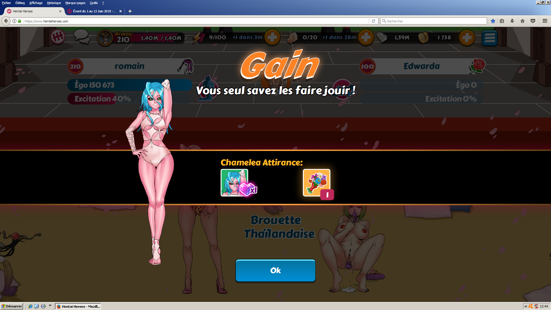 cockblack Posted June 2, 2019 Share Posted June 2, 2019 (edited) J'ai eu x100 il y a 20 minutes (1h07), mon premier depuis que je suis sur le jeu 😍😊 en trois jours. Record personnel battu. J'avais 18 points d'attirance avant ce x100. Direction la suivante. Edited June 2, 2019 by cockblack Link to comment Share on other sites More sharing options...