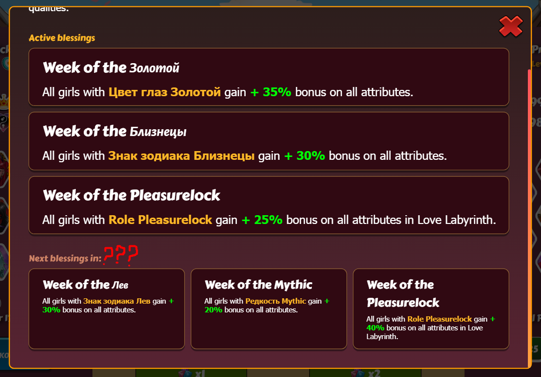 jelom Posted September 21, 2024 Share Posted September 21, 2024 blessing always change on mondays at reset, no clock needed for that. 1 Link to comment Share on other sites More sharing options...