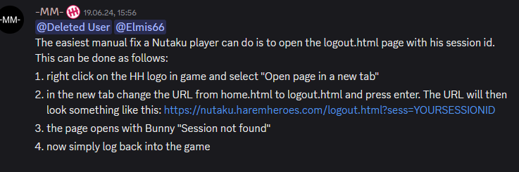 Master-17 Posted September 25 Share Posted September 25 17 hours ago, Alander said: Hi @Master-17. Log out of all games and only then log back in. This is what helped me. OK, Google. How to logoff from Nutaku HH, CxH and PsH completely? Because logoff from Nutaku and cleaning cookies don't help Link to comment Share on other sites More sharing options...