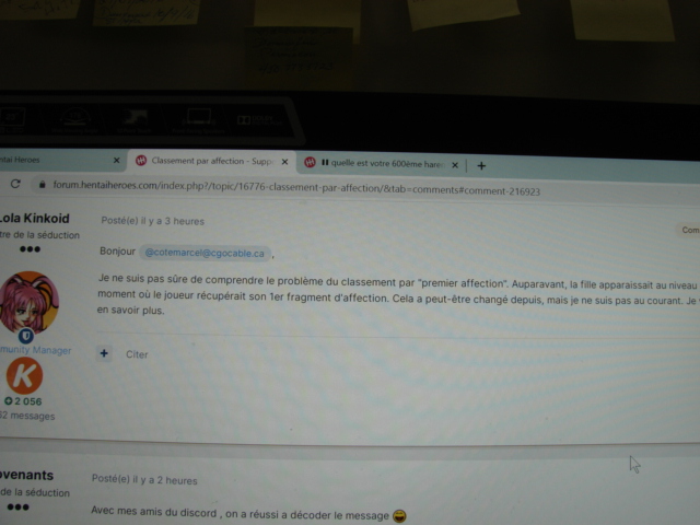 gorgedidier@gmail.com Posted January 25, 2021 Share Posted January 25, 2021 Il est vrai que je manque toujours de koban, de un parce que je suis un stresser de la vie et quand je tien a gagner, je donne tout ce que j'ai (il y a aussi le fait que je farme les trolle pour avoir toute leurs fille avant de passer au monde suivant et que je suis a deux doigt d'enfin finir Roko et de passe au monde suivant, sa fait des mois que je veux voir la suit, disons que je suis prêt a faire quelque sacrifice.). Ensuit, faire des économie pour une seul fille, sa rentre pas trop dans mes habitude, les mythique sont impossible a gagner pour le moment pour les personne comme moi, j'attend le premier revival pour voir le taux de drop, de toute facons, mon but est de gagner la max de filles, alors autant économiser pour le chemin d'affection, il y a plus de fille a gagner. Perso je commence enfin a gagner les meilleur place dans ma ligue (top 4 D2), j'ai juste augmenter les lieux de pouvoir avec la récompense, mais une fois que j'aurait finit, les réserve vont commencer. Perso je tente toujours de gagner au moins la moitié des filles qui arrive pendant le mois puisque le jeu ne prend pas d'avance sur moi, je considérer que quand ont a plus de le moitié ont commence a être rentable, et que quand on dépasse se nombre, on domine le mois. J'ai perso eu 24 filles en un mois, merci les orbes de pachinko épique (vivement que je l'ai vider pour gagner des filles d'event avec ces orbes, je vais battre mon record). Sinon, vous avez compris ces quoi cette histoire avec les filles des lieux de pouvoir provisoire, j'ai pas compris? 1 Link to comment Share on other sites More sharing options...