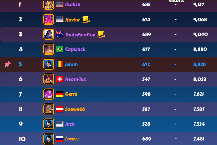 OmerB Posted March 14, 2024 Share Posted March 14, 2024 I finished 2nd behind Darkyz in a very chill week. When I saw his total score, I thought that I could have passed him, if I was determinded enough. 1 Link to comment Share on other sites More sharing options...