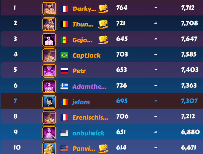OmerB Posted January 15, 2023 Share Posted January 15, 2023 I'm doing quite allright at my first attempt at D3, with an average of 21.59 so far (from 116 fights). It might go down a bit till the end of the league, to an average of near 21. I'm hoping that it will be enough for a top 15 finish on my first try on D3 🙂 We are 112 players on my D3 division. If there are 5 D2 divisions, in two weeks we will have 5 D3 divisions (on 26th of January). 1 Link to comment Share on other sites More sharing options...