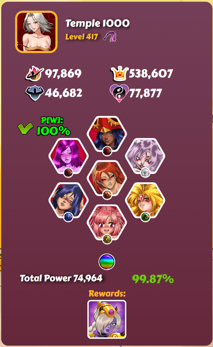 Moderator DvDivXXX Posted August 4, 2023 Moderator Share Posted August 4, 2023 7 hours ago, MrXY said: Does someone know if the temple girls got stronger with the introduced skills? That's an interesting consideration; I hadn't thought about it because I've finished the Pantheon already. Well, until they extend it further and/or release 8+ new ones at least (and who knows, it was somewhere in one of these future features surveys, after all, so it's probably coming our way sooner or later). You can literally just check (at least at your current Temple level) by hovering your mouse over them. And the answer is technically YES. Here's the situation for Temple 2001 ("Hero/Player" level 900): They're all fully maxed out in the existing four Tiers. However, in terms of how much difficulty this adds, the Temple's team is such a negligible part of its overall power, I'm not sure this will make a very noticeable difference or not. 1 1 Link to comment Share on other sites More sharing options...