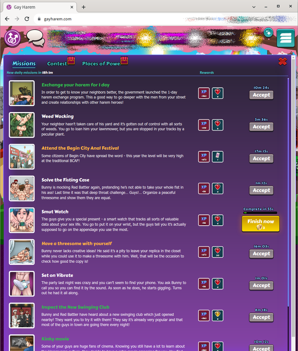 NYPup2Train Posted January 23, 2022 Share Posted January 23, 2022 Kinkoids, (Kinksters? Kinkoidenants?) I access GayHarem exclusively using a desktop web browser, usually in windowed mode sized to about half of my 16:10 widescreen monitor. IOW, with the browser page laid out in a decidedly portrait aspect. The forced landscape aspect of the game interface has always been a bit annoying, because of that. And while it may once have made sense, the fact is that as the game has expanded, your own additions to the interface have rendered the landscape configuration less and less ideal for the interface. A couple of months ago, after I finally got sick of unnecessarily scrolling up and down to see all of the game content, I went in and hacked up a userstyle with enough overrides to take better advantage of the additional screen height by displaying useful content. (The appeal of Bunny smugly waving his phone at me and telling me I should turn my 24" monitor sideways is not, shockingly enough, particularly entertaining.) So for a number of weeks now, this is how I've been seeing the interface. (These screenshots are about a month old.) It's not perfect since everything I do is fighting against your JavaScript scaling code, and I haven't tackled anything outside of the three Activities sections, but the no-scroll view of the entire "Places of Power" interface alone more than makes up for minor glitches. (I haven't extended the harem interface to full-height yet, but that would probably be my next target if I decided to expand this further.) Of course, an officially-supported portrait layout wouldn't have to fight with the rest of the site code, so the interface would be glitch-free and much more polished than my hackery. I genuinely think there are plenty of other players who would be interested in the added convenience of a portrait-layout interface. (And I'm sure most people would prefer being able to do it without having to resort to a deep dive into your the site's content structure and CSS! Unfortunately for me, I'm not most people.) Let your users decide what layout works best for them, don't force them to conform to your arbitrary design constraints! As I think I've just proved, some of us will have our own way regardless.) 1 Link to comment Share on other sites More sharing options...