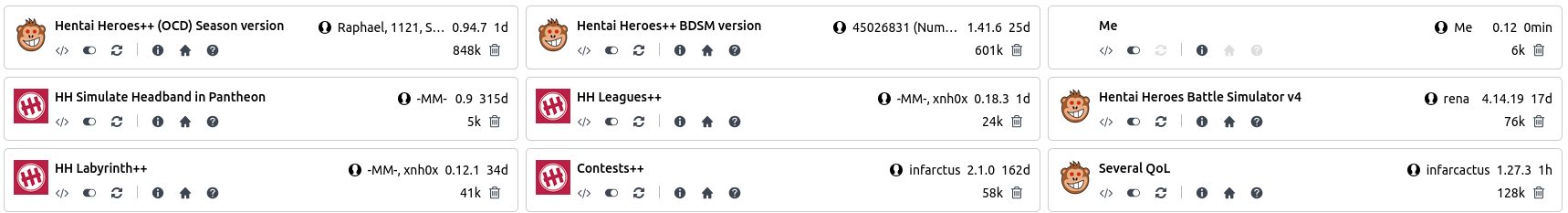 Master-17 Posted December 11, 2025 Share Posted December 11, 2025 (edited) On 12/10/2025 at 10:01 PM, infarctus said: So I'm just sharing the current state of the script (some things are useful only for nutaku don't worry if you see less options) It's awesome! All that's left is to get used to the lack of extra confirmation clicks (It seems like it will be more difficult than I thought 😅😁) This is the most useful visual redesign! 😆 Special thanks for Logout. I've been having to do this frequently on Nutaku lately due to issues with the Premium window being unavailable, and the "traditional logout" is a very long and tedious process. On 12/10/2025 at 10:01 PM, infarctus said: And for any people that miss the old layout before Lust Arena I made this (tooltip on hover): Now you should add this notorious Penta Drill here, damn it Edited December 11, 2025 by Master-17 1 Link to comment Share on other sites More sharing options...