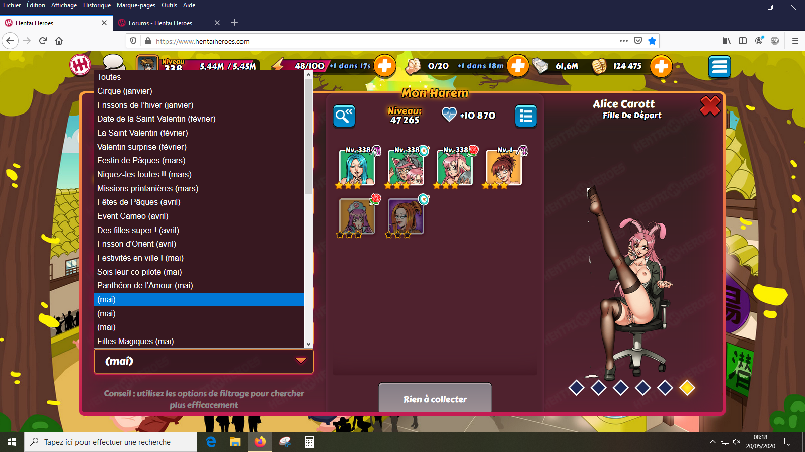 Moderator DvDivXXX Posted May 20, 2020 Moderator Share Posted May 20, 2020 (edited) 5 hours ago, stranger2x@yahoo.fr said: Je vois pour le prochain évent commençant le 25/05/2020 au 30/05/2020, des préliminaires durant 5 jours (Deuxième essai !, Fêtez l'amour et Histoire Shokushu.) En fait ce sera PoA 2 (regarde le serveur test si tu as encore un doute) qui durera 7 jours a priori (et qui devrait donc finir à 13h CET le 1er juin juste quand commencera l'event de début juin). Les revivals du mois ont déjà tous été concentrés dans l'event méga-OD qu'on vient d'avoir. Ils ne font plus de revivals simples et, a priori, le retour des très impopulaires FP (Préliminaires) qu'on a eus qu'une seule fois semble très improbable aussi (et tant mieux, c'était trop cher pour ce que c'était). Et oui, le calendrier est tout retourné à l'heure actuelle, principalement à cause du changement d'heure de reset (annoncé pour demain puis pour aujourd'hui, j'ai pas encore vérifié si c'est actif ou non), et aussi du rallongement de la durée de PoA. Je ne me souvenais pas de ce thread. C'est une sorte de recueil de prédictions, c'est ça ? EDIT : Okay, après avoir revu la 1ère page, je me souviens : normalement c'est pour partager des infos ou rumeurs obtenues en avant-première par Discord etc. Ça a juste un peu glissé sur la dernière page. Edited May 20, 2020 by DvDivXXX Link to comment Share on other sites More sharing options...