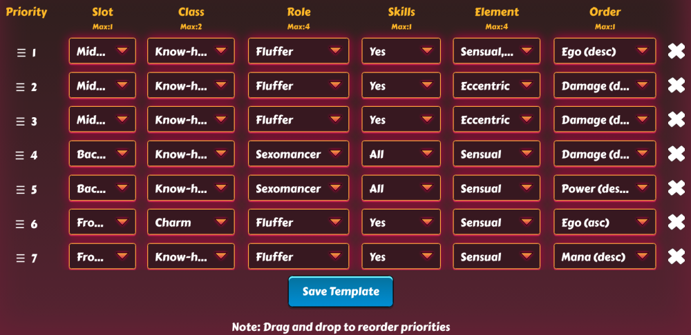 Ich42 Posted January 19 Share Posted January 19 (edited) A update: a) A summary as introduction: Here is a short summary that explains the most important things. For more detailed information, please read the appropriate section. First of all, keep your first/strongest 7 girls free of GS5, it makes the run much easier. And if you have dominator or a Masochist girls in the active team, check in the FAQ the bug list. It doesn't matter if you don't take girls into your squad, the first/strongest 7 girls you have in total will always be observed. For every GS5 girl in your first/strongest 7 girls, there will be just as many GS5 girls in the (Boss) fight. The position of your GS5 girls is mirrored in the team of your opponents. Every GS5 on the opponent girls makes your run harder. If you have GS5 girls try to put them in position 3 or 4. As these positions are the first to be attacked. If your opponents still have GS5 girls, check the bug list under j) The FaQ to see if you have been affected. Secondly, there are recommendations for your active team to get as far as possible. The front girls should be tanks (hardcore) and the back girls should be damage dealers (Know-How). You should also have 1 to 2 Sexomancer in the back girls, I would recommend 2 Sexomancer. The Sexomancer girls do not need GS5, as their role overwrites the GS5/skill and should be at max LVL. It is recommended that all non-Sexomancer girls should have the role of Fluffer. Because this role (Fluffer) heals the other girls and only attacks when they are all healed. Spermacaster make sense, but you have to know how to adapt a team. In contrast to the opposing team, your active team should have many GS5/skill. The GS5/skill/Elements: 🔴 Eccentric (red), 🔵 Sensual (blue), ⚪ Submissive (white) and 🟢 Exhibitionist (green) are recommended. There should be at least one Eccentric (red) in your active team as this causes % damage to the opponent. Fluffer and Sensual (blue) complement each other well and many have some of them in their active team. In my opinion, the best team at the moment without much testing. Submissive (white) and Sensual (blue) have similar effects in principle, there are different teams/ideas behind them and both are very successful. You can also combine both team ideas, but this should be tested. Exhibitionist (green) is useful and can fill spaces if there is still room. The other GS5/skill/Elements are not very useful, but better than having no GS5 at all, except the girls are always in the top7. Legendary girls should be favored over mythic girls and the best LVL for your girls is 650, as they are less likely to end up in the top 7 with their GS5. With LVL 650 they can have GS5 and they can have at least 4501 Know-How for 20 starting Mana. As everyone has a slightly different harem, these are only recommendations and should be adapted to your harem. There are more roles and ideas for an active team, but this should just be a short summary. Third are the relics you can choose. With the right relics, you can make your run easier. But with the wrong ones, even very good teams can be defeated as early as the Boss 3 fight. For relics prioritise Duck Master first (Max > 100%) and second Protective Bubble (are added as a percentage) both add up. You should also have at least 6% Finish Move so that opposing girls can be defeated again with one attack despite opposing Sexomancer and Fluffer. And every relic that increases the damage should be collected afterwards. If you complete a floor (floors 1 to 3) with at least 95% ego points among the girls, you can save the run for the next run (It calls Sweep Floor x). This means that you get the same relics in every run. This allows you to look for relics and then save these floors. It would be advisable to have at least one girl with 90% dodge, but in the long run it would make sense to have two front girls with over 100% dodge. Everything in one picture: ------------------------------- Did I forget anything in the summary, or should something else be added to the pictures? Edited January 19 by Ich42 3 Link to comment Share on other sites More sharing options...