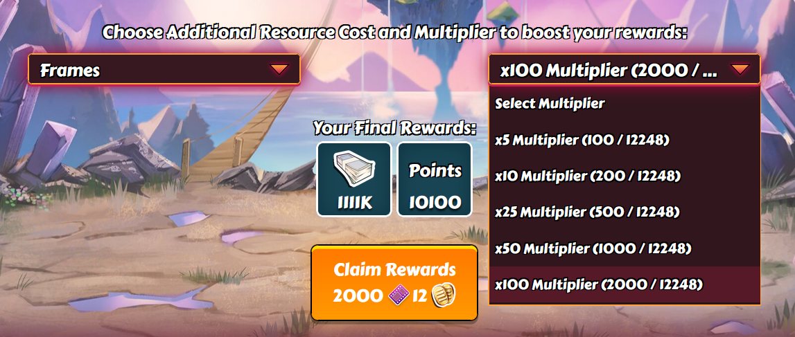 Moderator bolitho76 Posted July 28, 2025 Author Moderator Share Posted July 28, 2025 World Boss Tournament (WBT) (Event Banner July 28th 2025 - Mythic Revival WBT) (Event Banner August 6th 2025 - Ressorces only WBT) (Event Banner September 10th 2025 - New 5* Girl WBT) The Event started with 3 different Variants: a) Reviving a Mythic Girl b) Adding a new 5* Legendary Girl (KK replaced this Variant in November 2025 with World Boss Coop Event) c) "Only" Ressources winnable The same for all variants is how you gain points for the ranking: At the start you have to choose the difficulty level of the following fight. Higher difficulty gives more points, but the fight is remarkable harder. Only if you regulary win the Labyrinth runs in "Hard mode" you should try the "Hard" difficulty here. The chance, that you loose relevant amount of ego or the whole battle and gain much less points, than with a win with 100% ego left, is to high to make it meaningfull in the other cases. You have to choose a Ressource you start a battle with. How much of a specific Ressource you need is different, but shown when you choose the Ressource. After you have confirmed your decision, you immediatly change into the battle section. The Event use the battlemechanic from the Labyrinth. So you should read the "ultimative Tipps & Tricks for Labyrinth" Thread to make a solid Team that can win the battle. (The different, usable ressources and their value per fight) With the start of the battle section of the Event, you have to choose a Relic that should help you in the following battle. After this you have to select your Team for the battle. (Pre Battle Screen WBT2, August 6th 2025) If you win the battle, you can gain up to 100 Event points and after you "claimed" the points and the aditional Yumen, the "multiplier" widget opens. Here you can invest aditional ressources to increase the points you gain from this round. The multipliers are x0, x5, x10, x25, x50 and x100. Even the stages above x5 needs Koban, it is not bad to invest the 12 Koban for a x100 multiplier: if your not a whale with unlimited ressources you'll don't have enough ressources to do it to often to drain your Kobans to extremly, but it safe a lot of time if you use a x100 multiplier and gain 101x the 100 poins in one round or if you do 17 round with the multiplier of x5 to reach a similar score. Using the x10, x25 and x50 multiplier seems a waste to me, after the cost 6 or 12/1 or 2 Koban/Nuban too and, in comparison to the x100 multiplier, they are way more expensiv related to gotten points. After you have claimed the multiplied reward, you can start the next round immediatly with choosing a Ressource. Variant a (Reward Table from September 19th 2025, ca. 14:35) Variant b Thisariant was replaced with WBC after only 2 appaerances. Varinat c (Reward Table from August 6th 2025, ca. 13:56) Another relevant part of this Event is the "milestone widget" All points, you gain in the Event will be added to reach some the milestones and gives you some nice rewards. The first "half" of the milestone path ends at 95.000 points, the second "half" has the exact same rewards, but goes from 95.001 points to 250.000 points. The Event is a hughe sink for Ressources so it's not Newby friendly and even Veterans who aren't whales will have problems, after it's extremly expensiv to reach the top % of the rankings. From what we saw in the first few examples of this event (written while WBT #6 is active), it's not recommendable to try to gain a girl fully from here if you don't have nearly unlimited ressources. 500.000 points for top 1% was more than once reached in the Mythic and the 5* Girl rankings. On the other side, there were days, where the ranking ended much lower, so if you want to score high enough to gain shards, it's better to use not day1 and only try to spend ressources near the end of the ranking, to have a hint how much you have to invest for a specific result. My personal advice is, to mostly ignore the Mythic Revivals and wait for the reappearance of theese Mythics in MDR in some years and only do enough for the minimum shard reward for the new 5*Girls (outdated). Same for the Ressource WBT. You have to invest way to much stuff, for what you gain from the ranking rewards and the milestones. To compete with players, who have storaged ressources since years and whales is extremly hard and it's not to expect, that in the next months the scores go down enough, to make it a decent thing to try to gain a good ranking here. Link to comment Share on other sites More sharing options...