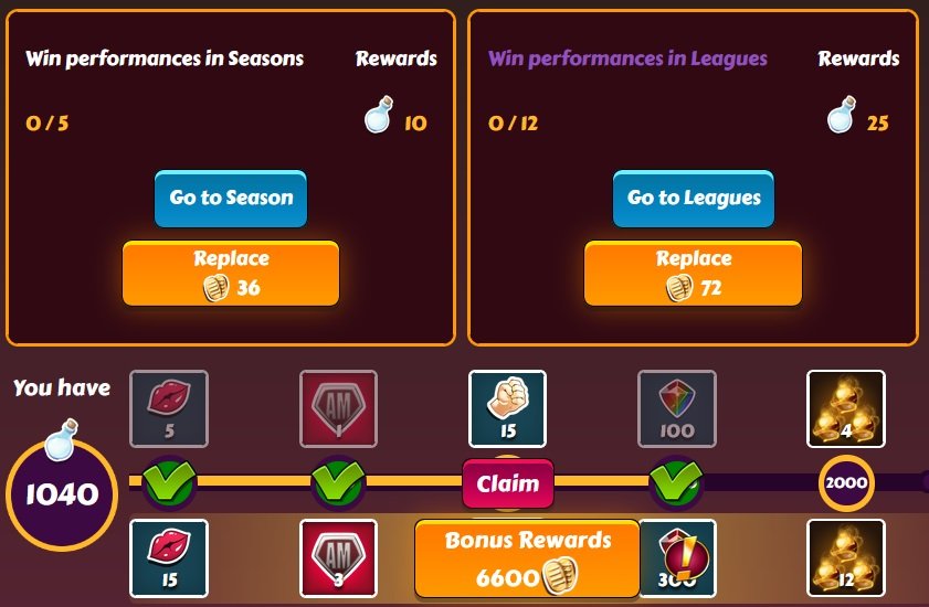 mdnoria Posted February 14 Share Posted February 14 (edited) And done. Only minor tasks except a win 12 league fights hard task which took me all day since I had used all my fights before reset. The following hard task was a restock market 3 times but I was at 850 points at the time and decided to finish only with easy tasks to not spend an extra koban. I bought the paid path. Edited February 14 by mdnoria 3 Link to comment Share on other sites More sharing options...