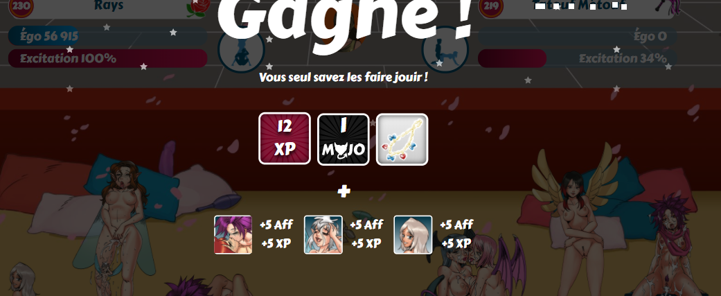 sarutobi007 Posted April 18, 2018 Share Posted April 18, 2018 Il y a 2 heures, Rays a dit : je ne pense pas que tu aies raison ... au point de changer se spécialité.... si j'observe bien mes combats le fait d'augmenter la défense s'applique à tous ... pas à nous seuls... charmes... c'est plutôt nous qui en augmentant nos stats augmentons notre égo afin de tenir face aux SF ... j'ai fait un combat contre un SF et il a eu 3 ou 4 Réassurance il avait 140 000 d'égo donc ça fait 14 000 * 3 qu'il a eu en plus durant le combat... si je n'avais pas eu une fille HC dans mon équipe qui a joué de sa détonation et une fille SF en fin qui m'a donné une réassurance vu que j'ai un égo assez important ... je serais pas ici actu... donc il faut plutôt trouver comment tenir ton égo assez élevé ... et un moyen de faire baisser l'égo que les SF auront grâce à leur performance ... j'avoue quand même que c'est devenu assez complexe et j'ai plusieurs questions sans réponses ... peut être que les autres en jouant viendront y répondre ici ... Faudra bientôt faire maths sup pour suivre ^^ En tout cas,auparavant on nous disait qu'on devait avoir 3 filles de notre classe en combats et c'était vrai,c"était plus compliqué en mettant une fille qui n'est pas de notre classe en beta et omega. Si maintenant on doit bricoler et varier les filles en beta/omega sans savoir ce que ça va donner,c'est encore plus étrange. Je vais rester comme ça aujourd'hui (3 filles charme) et tester avec Bunny 5 étoiles en beta et omega demain (avec Abrael 4 étoiles en alpha),on verra ce qui marche le mieux. Pour le moment il faut que je tombe sur clairement moins fort que moi en ego pour que ça gagne et ça risque pas d'arriver souvent avec mes petits 8000pts de charme (j'ai intérêt à être le premier à enclencher des coups critiques,au moins 1 ou 2 pour prendre de l'avance !). Link to comment Share on other sites More sharing options...