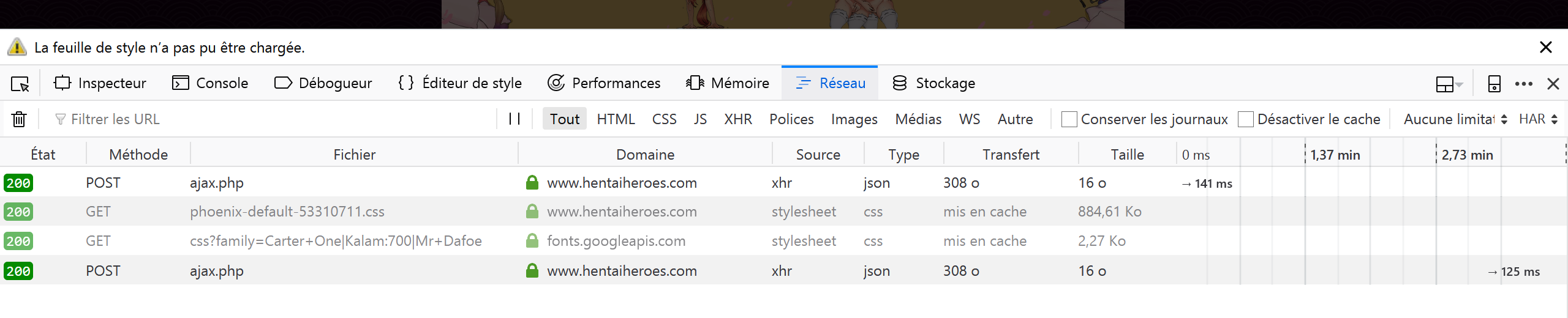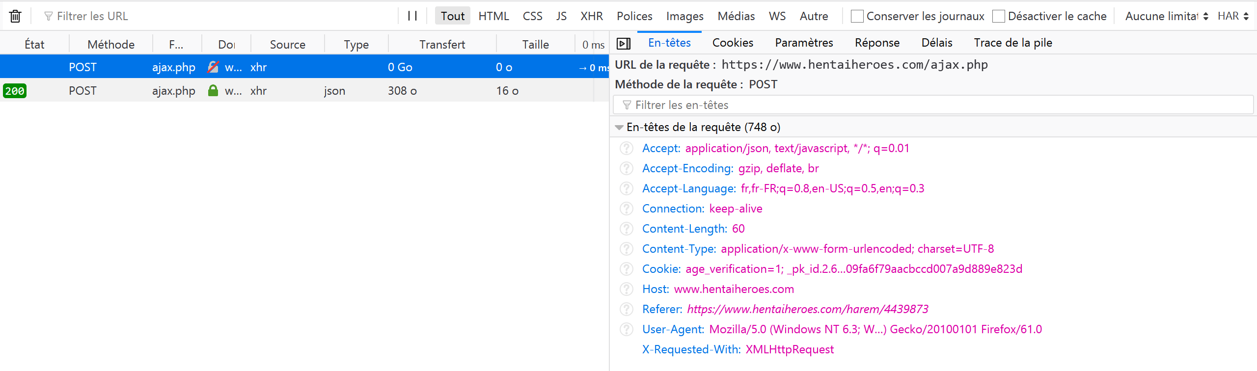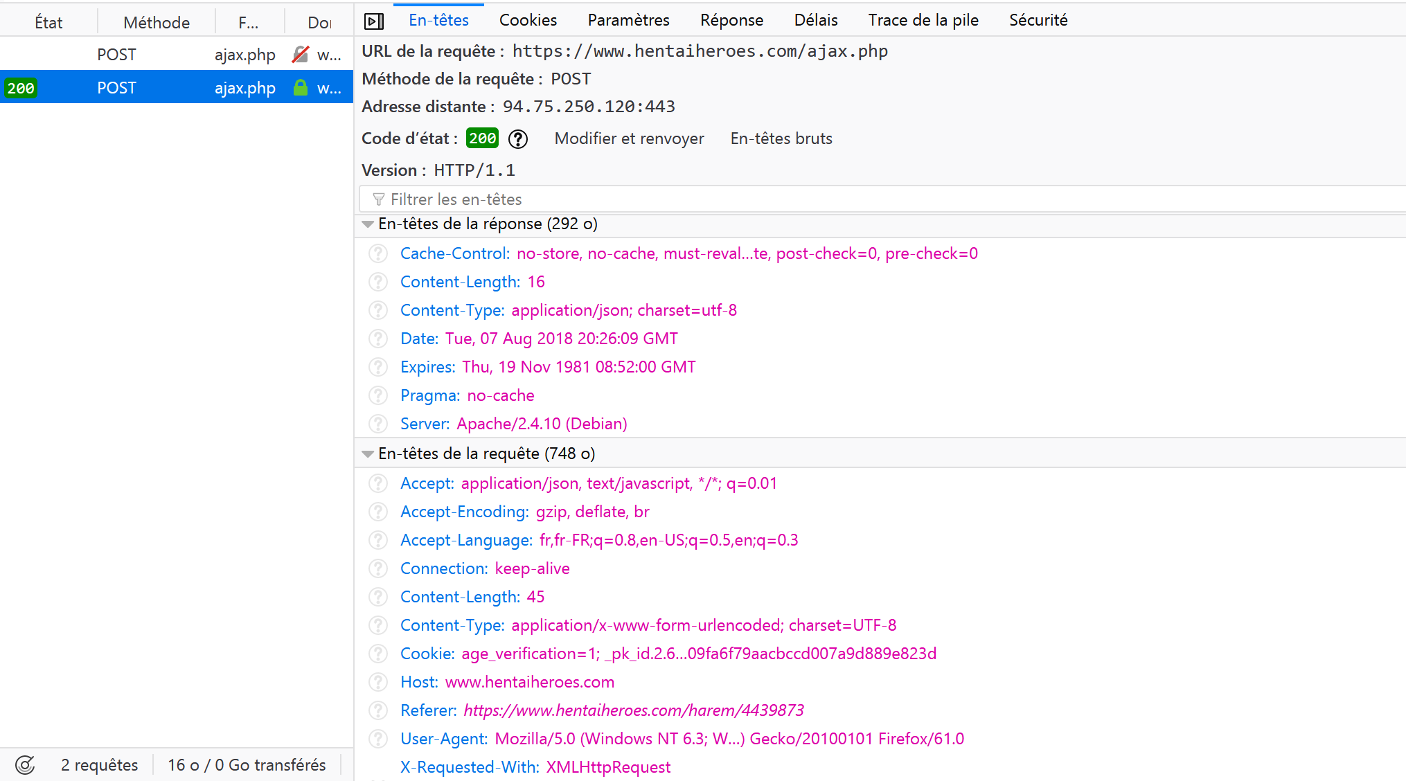 terreur32 Posted August 7, 2018 Share Posted August 7, 2018 voilà les screens demandés en-têtes réponse cookies paramètres rien et alors délais pour finir trace de la pile et voici les screens pour la ligne d'en-dessous en-têtes et réponse voila j'espère que c'est suffisant amis aujourd'hui est une journée où j'ai beaucoup de HH1 est-ce la chaleur ou beaucoup de connexions simultanées... je suis sur firefox et windows 8 avec vpn actif bon courage Link to comment Share on other sites More sharing options...