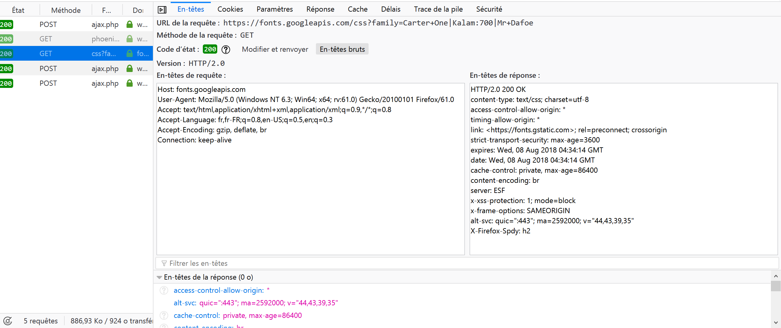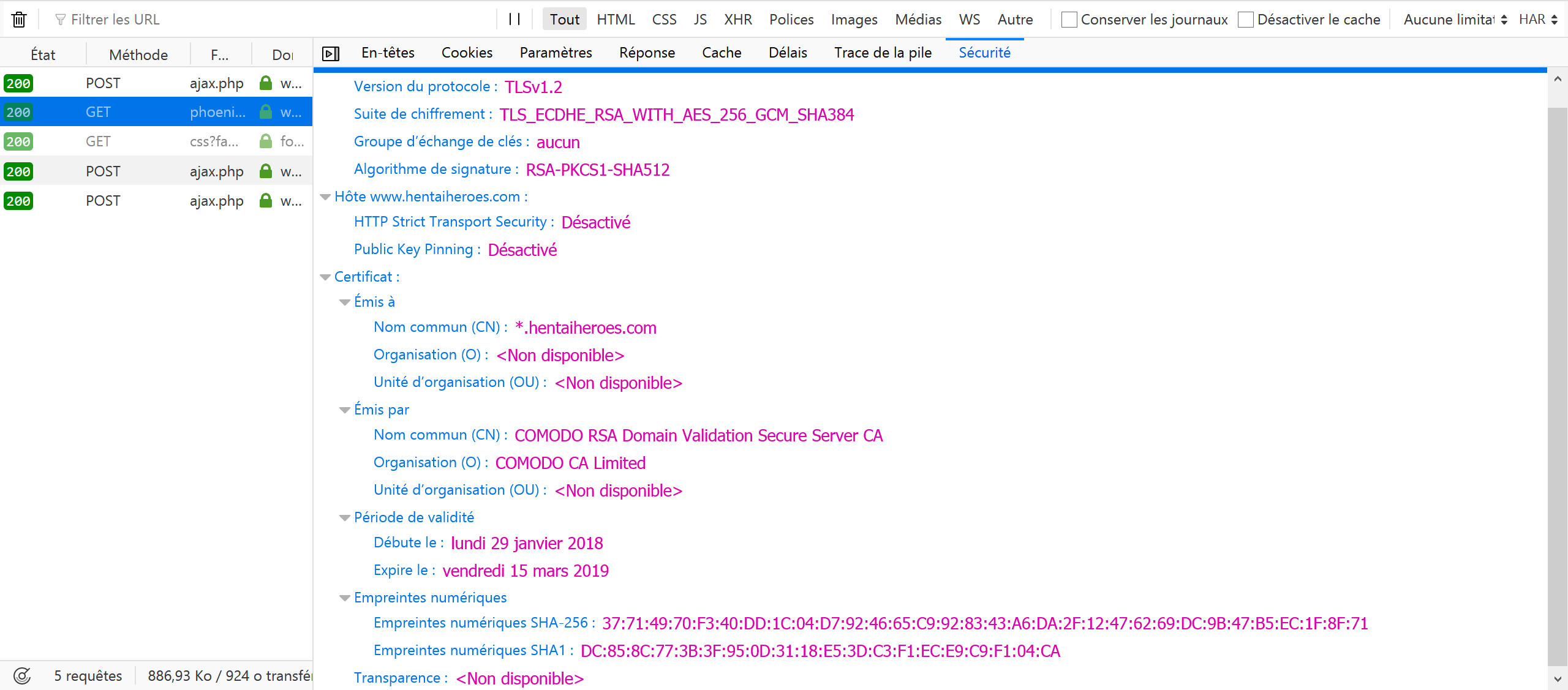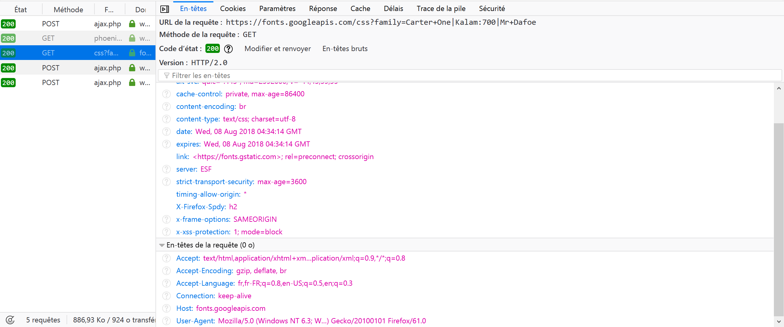 terreur32 Posted August 7, 2018 Share Posted August 7, 2018 voilà les screens demandés en-têtes réponse cookies paramètres rien et alors délais pour finir trace de la pile et voici les screens pour la ligne d'en-dessous en-têtes et réponse voila j'espère que c'est suffisant amis aujourd'hui est une journée où j'ai beaucoup de HH1 est-ce la chaleur ou beaucoup de connexions simultanées... je suis sur firefox et windows 8 avec vpn actif bon courage Link to comment Share on other sites More sharing options...