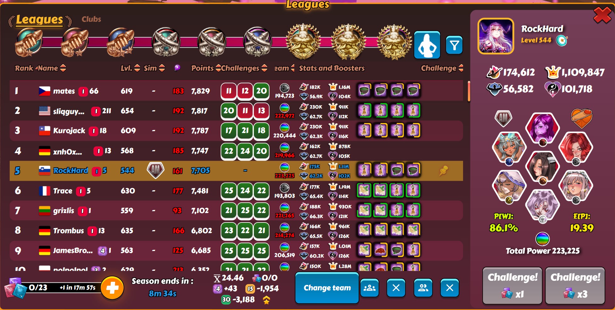 XXDongXX Posted February 8, 2024 Share Posted February 8, 2024 another win, i could get used to this 😀 screenshot from mobile 45 minutes before reset: During first Phase it looked like i will have strong competition for first place. But after blessing change i was clearly in the best position to grab that 1. place, at least gfrom my point of view. Mickoloko and [FDGN]~Speleo12 were the ones that i had in mind to become dangerous. Both performed good but not good enough. Fran was a bit annoying and the only one that i had lost many points to. He was showing a strong reflect team 24/7 (at least whenever i have checked) and refreshed boosters quite quick. But he was clearly not going for the win. Thats the first week where a didn't build my team around 1 trait but 2: Virgo and 69. There are 5 girls that have both attributes so gs3 bonus is still pretty high. Spoiler 1 8 Link to comment Share on other sites More sharing options...