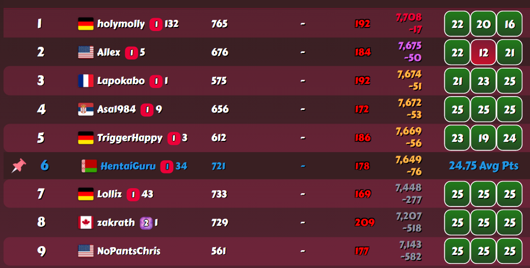Anon_sama Posted December 11, 2025 Share Posted December 11, 2025 I unfortunately advanced to Dicktator I (ended at 14th). I could consistently get to Top 15 of Sexpert III, but only because I would accumulate enough points from losses to overtake other players. There's basically no way I'm going to get any consistent wins in this tier. Looks like I need to demote myself and just never enter Top 15 assuming people will overtake me. This is basically how I always get to the next tier Link to comment Share on other sites More sharing options...