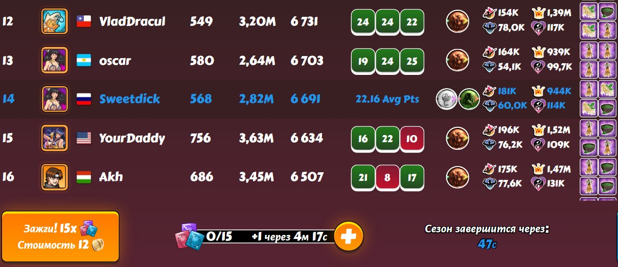 Vovantillo Posted December 11, 2025 Share Posted December 11, 2025 Last week I finished my performance quite calmly (without any surprises) in 14th place. * The next week also started more or less smoothly, and 47 minutes before the end of the league I was calmly sitting in 11th place, although during the league I missed a number of battles due to various circumstances. The real fun for me started at the end, with 5-6 minutes left. I suddenly realized I'd been dropped to 16th place, and I knew I had to do something about it. I still had about 15 fights to play, and zero free attempts. I had to buy six more fights, which I didn't do very well, as my opponents were still fully boosted. Three of the six fights were disastrous, but the remaining three victories were enough to finish the league in 13th place. I'm glad about that. 2 1 1 Link to comment Share on other sites More sharing options...