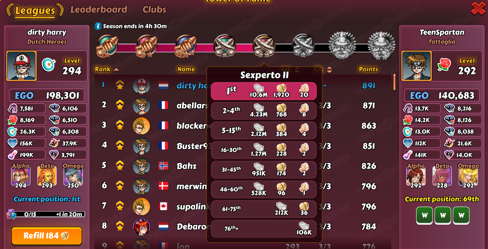 casey Posted January 7, 2019 Author Share Posted January 7, 2019 8 hours ago, _shal_ said: Only winnable battles left for me; as there's been no XP contest since the start of Saturday I've already done the ~20 tricky and unbeatable opponents. Oddly enough, my S2 bracket mirrors snowman22's in one aspect - the by far strongest player (KH, 192k ego) is the only one sitting on 0 points. Would be a bit of a stupid tanking effort since he could easily win the league here and doesn't need to drop down to S1 for that, so I'm guessing he's just busy. The second-best player is a HC with 10k less ego (at the start of the week - now only 8k), who likely needs some luck to beat that top guy three times. Nobody else is even close, I think. We'll find out anyway - #2 guy is one of two koban spenders in the bracket and will surely finish all his challenges for the week, so we'll see whether or not he manages a perfect score himself. It's not necessarily true that the KH guy is the strongest, I wouldn't be surprised if it's actually the HC player with the 10k less ego. For what is worth I'm HC player approx 220000 ego and last league season I took on a KH player with a 238000 ego and pounded him into submission 3 times, for whatever reason HC players seem to have a advantage over KH players. Link to comment Share on other sites More sharing options...