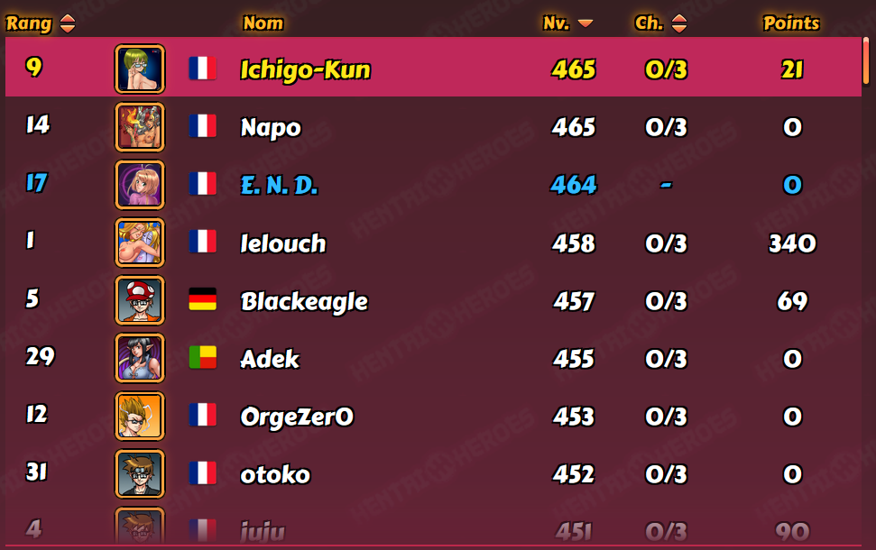 Moderator Kenrae Posted January 14, 2021 Moderator Share Posted January 14, 2021 New D3 league, 102 players, levels 331-476, median 427: Fran 476 KH 43 wins Didish76 462 CH 7 wins Cyber 461 KH 9 wins [CNO] Kozuku 460 KH 2 wins Déesse 458 KH 22 wins nicko 456 KH 3 x 2nd Itsme 454 HC 1 x 5th Derxedon 454 CH 2 x 9th Tschabi 454 CH 1 x 3rd Kodiak 453 HC 1 x 8th Madcap 453 HC 2 x 9th Tsunagirl 451 KH 1 x 8th I guess I can forget about winning this one 😂 Even a top 4 will be difficult, wish me luck! 2 Link to comment Share on other sites More sharing options...