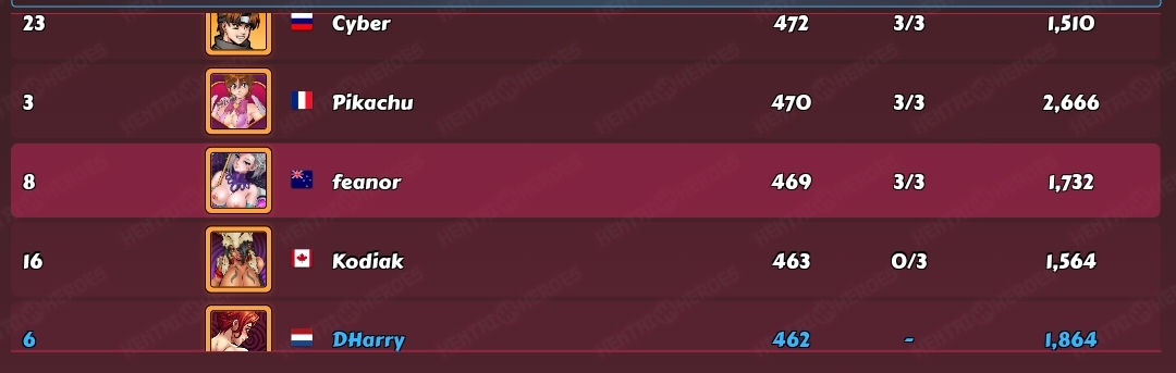 jelom Posted April 8, 2021 Share Posted April 8, 2021 After a hard week, haremverse gave me an easy bracket, without former league winners. 100 players D3. I should win, and my favourite for second is toriko73, with Frewia a bit below. down the ranks i can see our forum pal @Zamio, he will made top 15 for sure. A nostalgic note: I see toneti here. I remember when I started he was the first in the spanish leaderboard with more than 200 levels over me and in top 100 overall. At that time I saw that difference as unsurmountable, but with time and dedication (I played many arena battles in old times) I started gaining positions, and I finally could surpass him and many other top spanish players at that time. He remains hardcore and is not in a club, so he is very penalized. 7 Link to comment Share on other sites More sharing options...