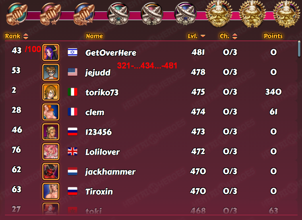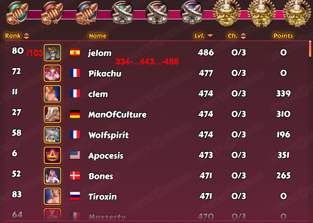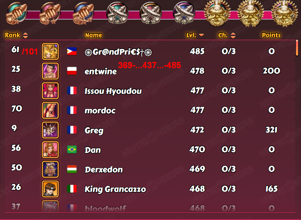 Moderator Kenrae Posted May 27, 2021 Moderator Share Posted May 27, 2021 New D3 league with 103 players, levels 357-479, median 437: Issou Hyoudou and TheMadaFucker make this a very hard league. 4 Link to comment Share on other sites More sharing options...